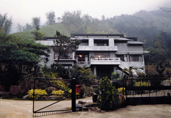 從庭院通往二樓的室外梯和陽台,都是由石片鋪設的,陽台的面積很大,三面設有欄桿式的女兒牆,站在那兒朝前望去,左起虎頭山,右至牛眠山,中間是埔里盆地,一片青翠,令人有心曠神怡之感,山風輕輕拂面,讓人流連忘返。