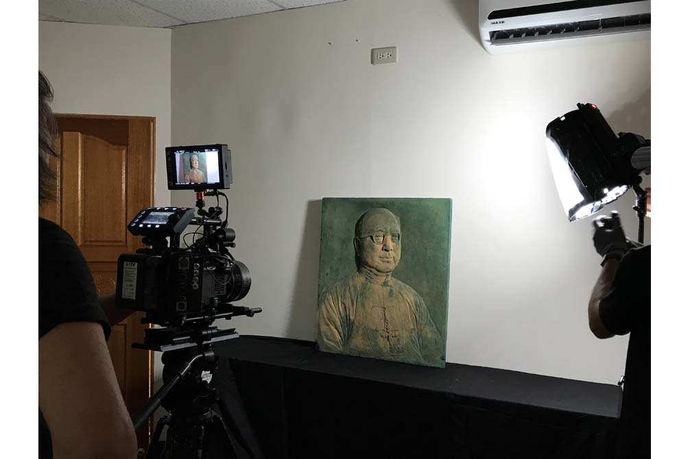 拍攝內容:釋寬謙法師(楊英風三女)收藏其父親之作品數件,紀錄片團隊當天拍攝兩天作品[仿雲岡石窟大佛]、[于斌主教]浮雕