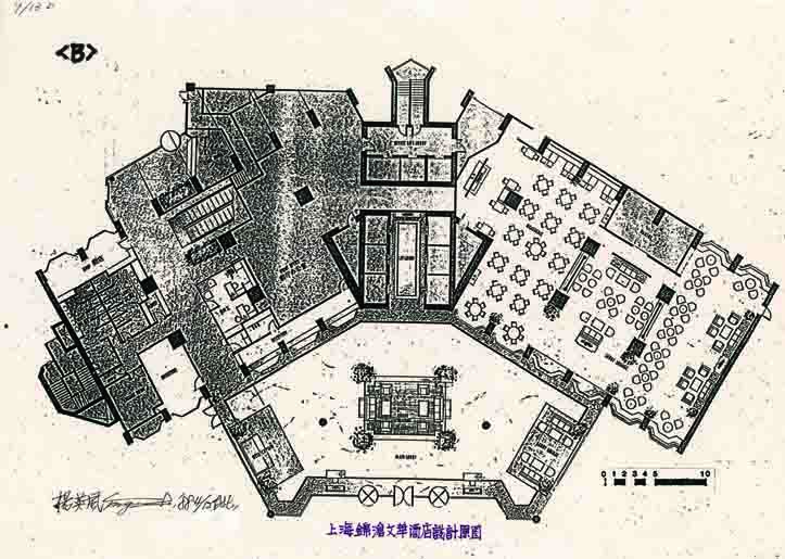 上海錦滄文華酒店為新加坡華聯銀行董事長連瀛洲計畫興建,並委託趙子安建築事務所承包大樓設計。楊英風當時在華聯銀行完成設置〔向前邁進〕景觀雕塑後,受連瀛洲的肯定,遂透過民間設計院副院長洪碧榮的牽引,希望與趙子安建築事務所合作,亦為大廳設計了巨雕壁畫與〔鳳翔〕景觀雕塑。然此案因故未完成。