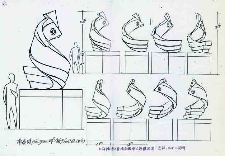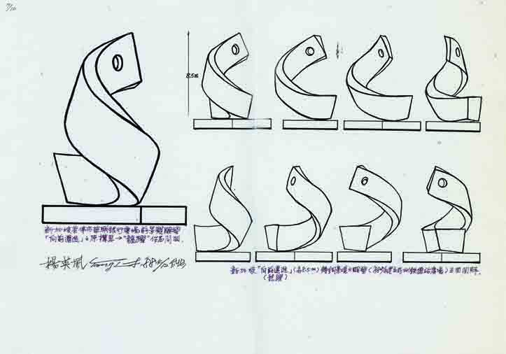 此作與星洲華聯銀行前之“向前邁進”原構思“龍躍”乃為和合之意匠,象徵星洲文華與上海錦滄文華交相輝映,剛柔並蓄,挺現一脈華夏的祥和哲思。